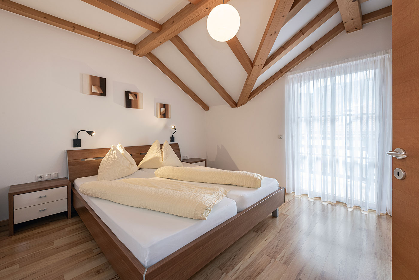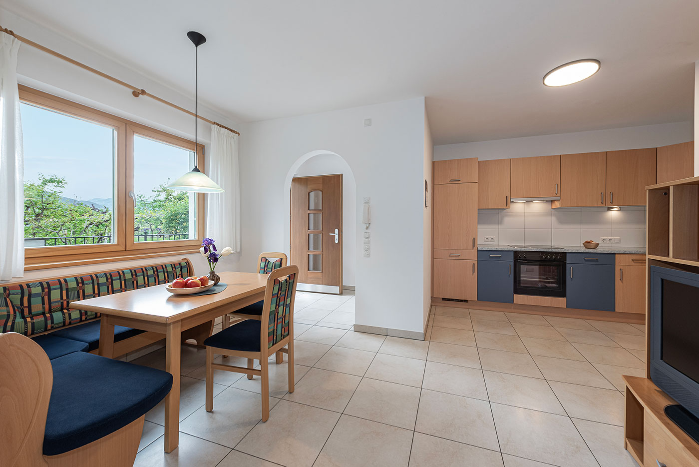 Die Ferienwohnung Hofblick im ersten Stock bietet Ihnen einen guten Ausblick über den Bauernhof Lafoi und die Dächer von Girlan. Hier können Sie die ländliche Idylle und das besondere Flair der Umgebung von oben genießen.